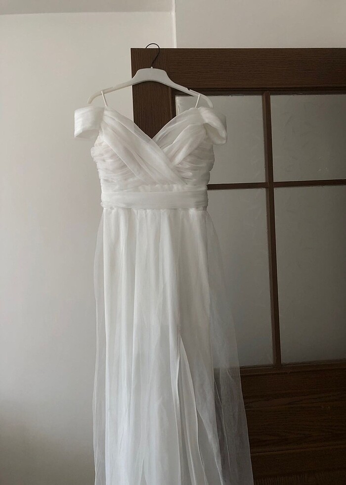 Nikahımda giydim sadece 36 beden 1.50 cm boy 12cm topuklu ile giyildi o şekilde ölçebilirsiniz tülünde bi yırtık var ama belli olmuyor