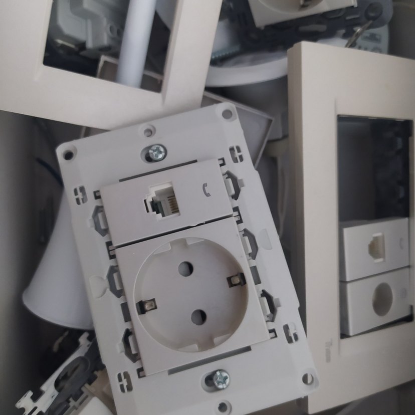 Beyaz elektrik prizi ve gri telefon jakı portu, kolay montaj ve güvenilir kullanım sağlar. 5 adet fiyatı ⚡