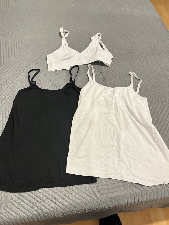 SÜTYEN SATILDI ATLETLET DURUYO.Hiç kullanılmadı . Sütyen 85 beden , atletler xxl rahat etmek için bol aldım .Beyaz emzirme sütyeni ve siyah-beyaz uzun atletlerden oluşan takım. Midi boy, desen yok, rahat ve günlük kullanım için uygun.