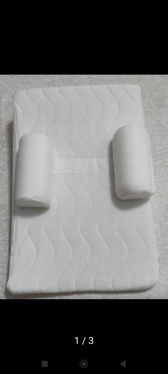 Yumuşak dalga desenli yüzeye sahip beyaz hamile ve emzirme yastığı, iki silindirik destekle konfor sağlar. ️