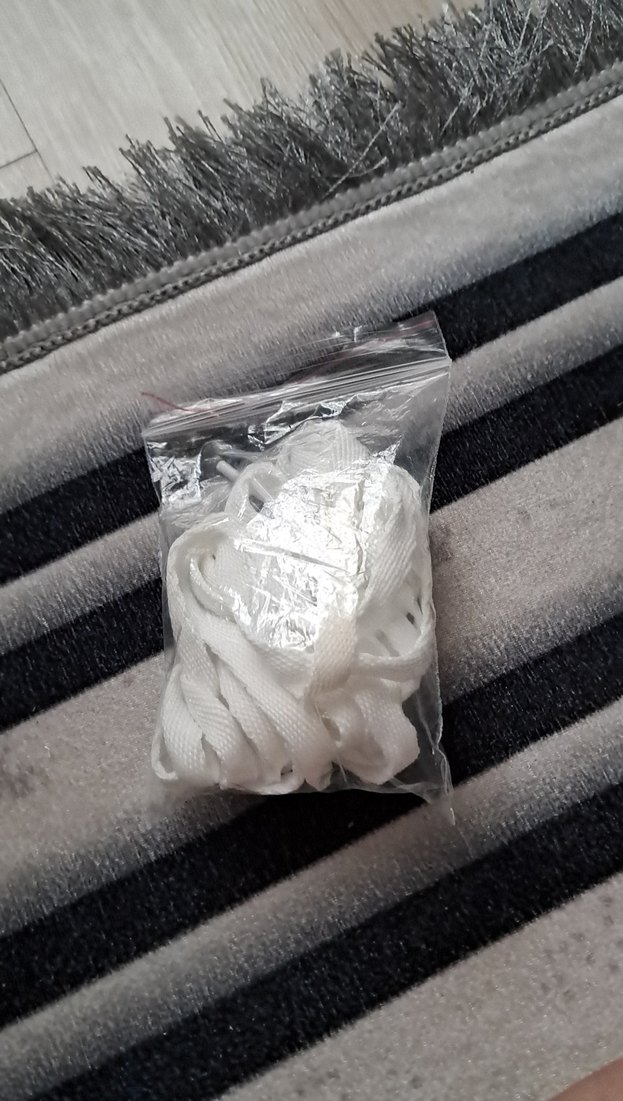Erkekler için beyaz renkte bağcıklar, rahat ve karşı kültür tarzına uygun şekilde küçük bir plastik poşette paketlenmiştir.