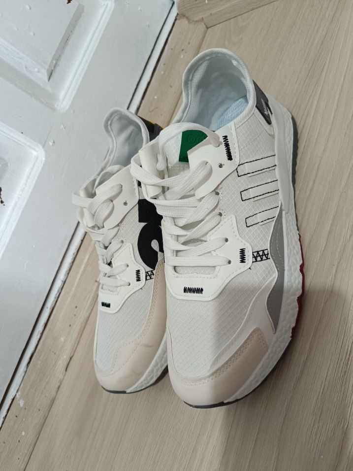 Bu beyaz erkek spor bağcıklı tasarımı, baskılı detayları ve kauçuk tabanlarıyla sportif ve günlük kullanıma uygundur. ♂️