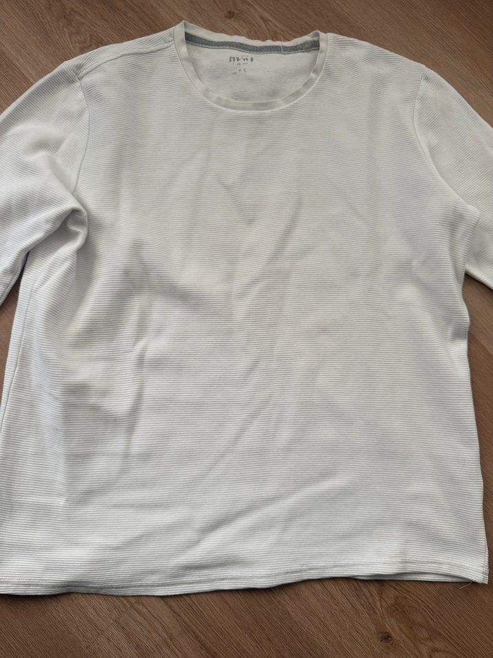 Beyaz renkte, düz ve bol kesim erkek tişörtü. Normal boyda, minimalist tarzda, rahat bir kullanım sunar. Kolunda leke var