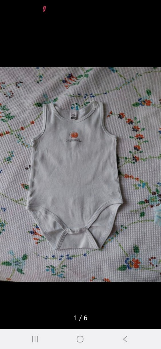 Yumuşak örme kumaştan, askılı beyaz erkek bebek body, göğsünde küçük basketbol figürüyle sade bir sokak stili sunar.