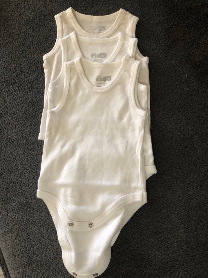 Beyaz renkli, askılı pamuklu erkek bebek body seti. Rahat kesimi ve sade tasarımıyla günlük kullanıma uygundur.