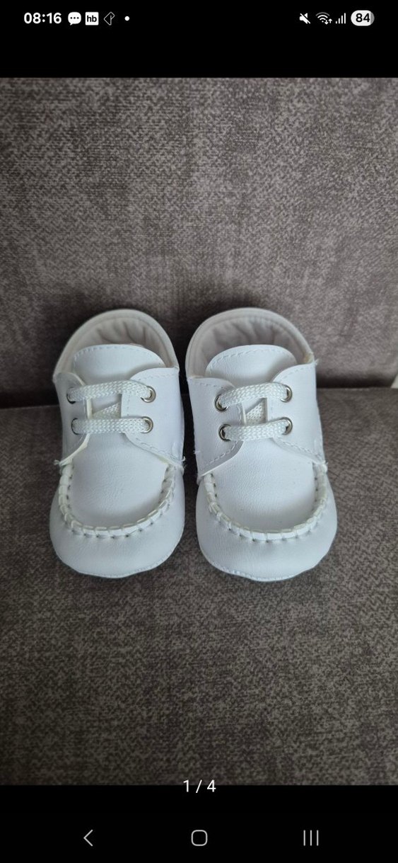 Sıfır ürün hiç kullanılmadı Düğmeli tasarıma sahip beyaz erkek bebek ilk adım ayakkabısı, yumuşak kauçuk malzemeden üretilmiştir. Sade ve desensiz modeldir.