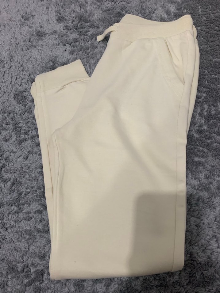 Yumuşak kumaştan, cep detaylı, beyaz, rahat eşortman altı erkek çocuk