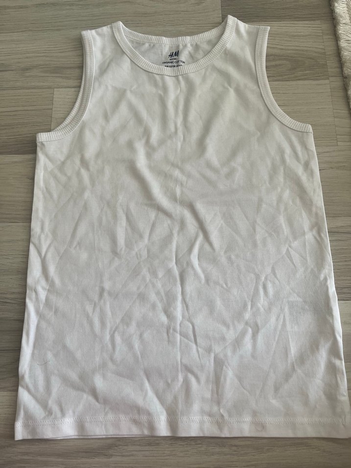 Yumuşak kumaştan yapılmış, beyaz renkte erkek çocuk için düz atlet. Yuvarlak yakalı ve sade tasarımlı.
