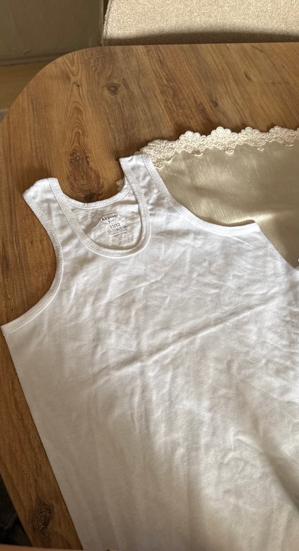 beyaz renkli, desensiz çocuk atleti 10 yaşındaki oğluma aldım ama yıkayınca küçüldü hiç giyilmedi. Ölçülerini resimlerde çektim. Tahminimce 7-8 yaşa anca olur