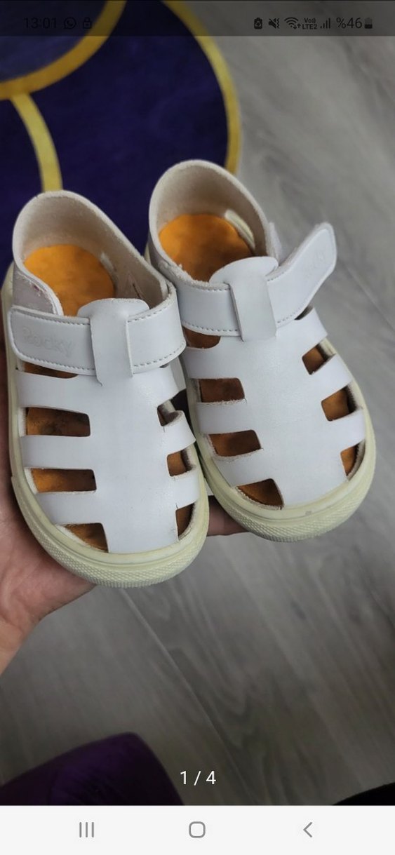 Beyaz renkli, cırt cırtlı, kauçuk malzemeden yapılmış erkek çocuk terliği, sade tasarımlı ve günlük kullanıma uygun.