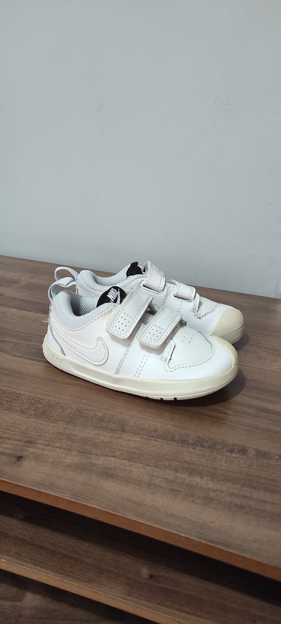 Beyaz renkli, cırt cırtlı, kauçuk tabanlı, sade ve hafif tasarıma sahip erkek çocuk spor ayakkabısı.
