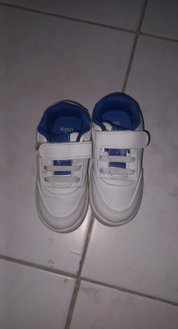 Beyaz renkli, cırtcırtlı ve kauçuk tabanlı erkek çocuk spor ayakkabısı. Sade ve rahat sokak stili ayakkabı.