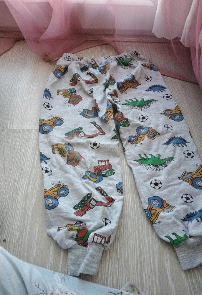 Beyaz, rahat kesim erkek çocuk eşofman altı, yumuşak dokulu kumaş ve inşaat araçları desenleriyle sokak stiline uygun.