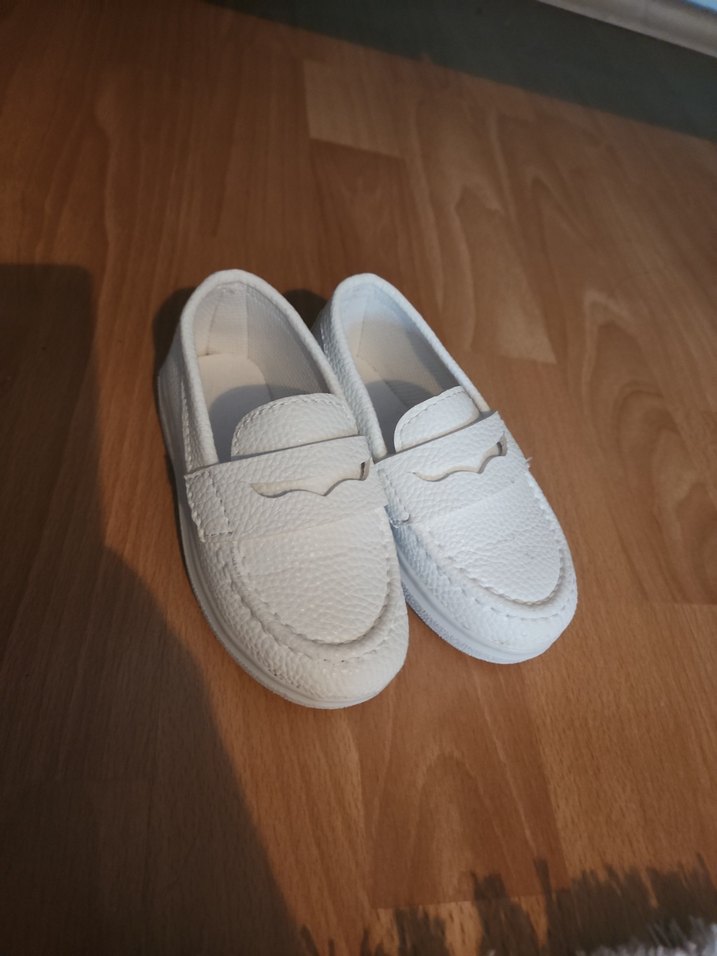 Beyaz, yumuşak ve dayanıklı malzemeden yapılmış erkek çocuk günlük ayakkabısı. Düz tasarımlı, günlük kullanım için uygundur.