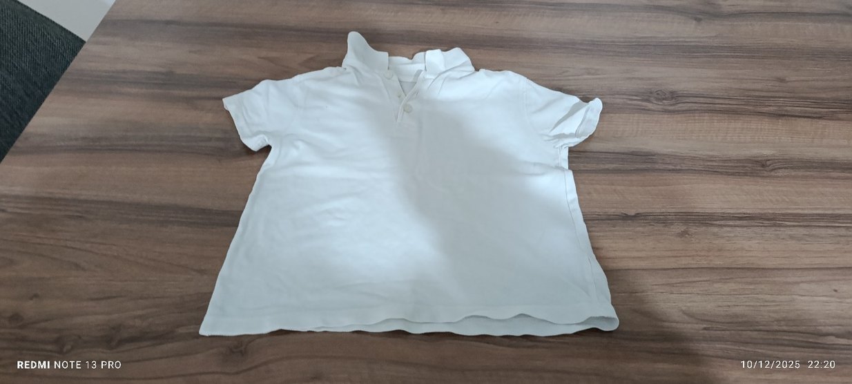 Beyaz Erkek Çocuk Keten Polo Tişört