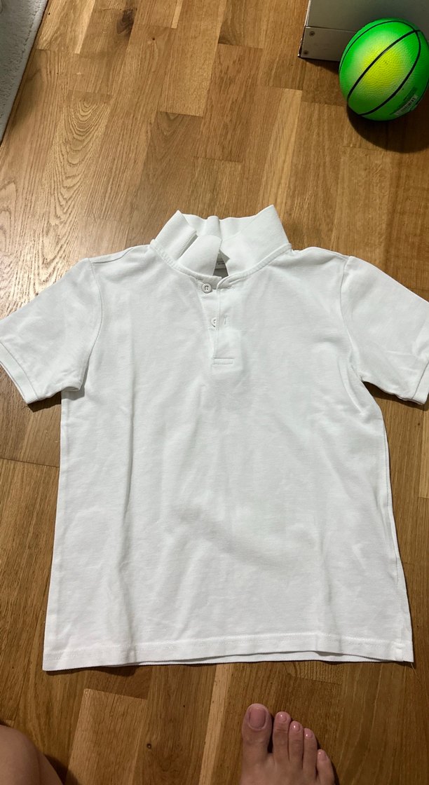 Beyaz renkte, pamuk kumaştan üretilmiş, kısa kollu ve polo yaka erkek çocuk tişörtü, rahat ve sade bir tasarıma sahiptir. Okul tişort Sıfır ayarında, 1 defa kullanıldı