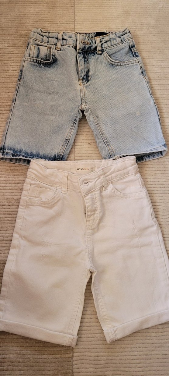 Beyaz Erkek cocuk Kot Şort Rahat Kesim