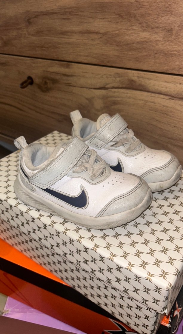 Gri detaylı beyaz erkek çocuk Nike , kauçuk malzemeden, kolay kullanım için Velcro bantlı. Sokak stiline uygun sade tasarım. Çok az kullanıldı temiz ürün