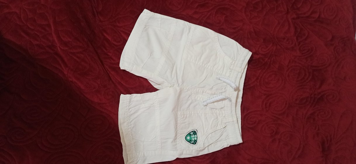 Pamuklu, düğmeli, bol kesim beyaz erkek çocuk şortu, sade ve rahat sokak stili için uygundur. SIFIR AYARINDA TEMİZ ÜRÜNDÜR