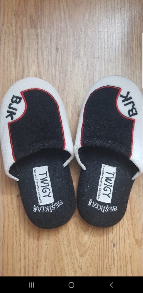 TWIGY ve BJK baskılı, kaymaz tabanlı beyaz erkek çocuk terliği, cırt cırtlı ve renkli detaylara sahip.
