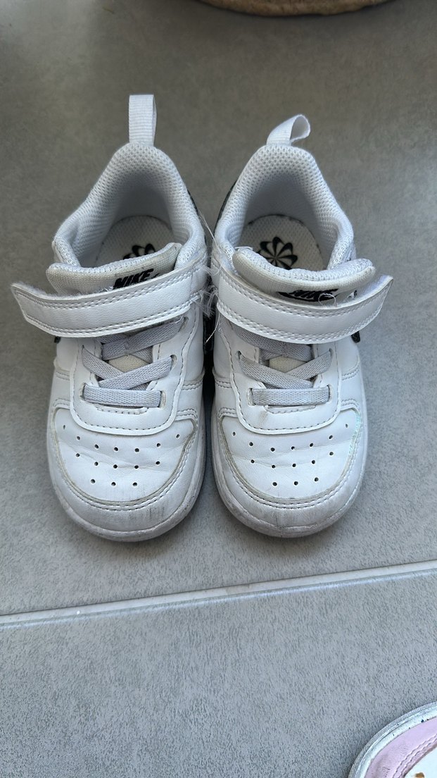 Cırt cırtlı, beyaz erkek çocuk spor ayakkabısı, kauçuk malzemeden, sade ve sokak tarzı, gri detaylı.