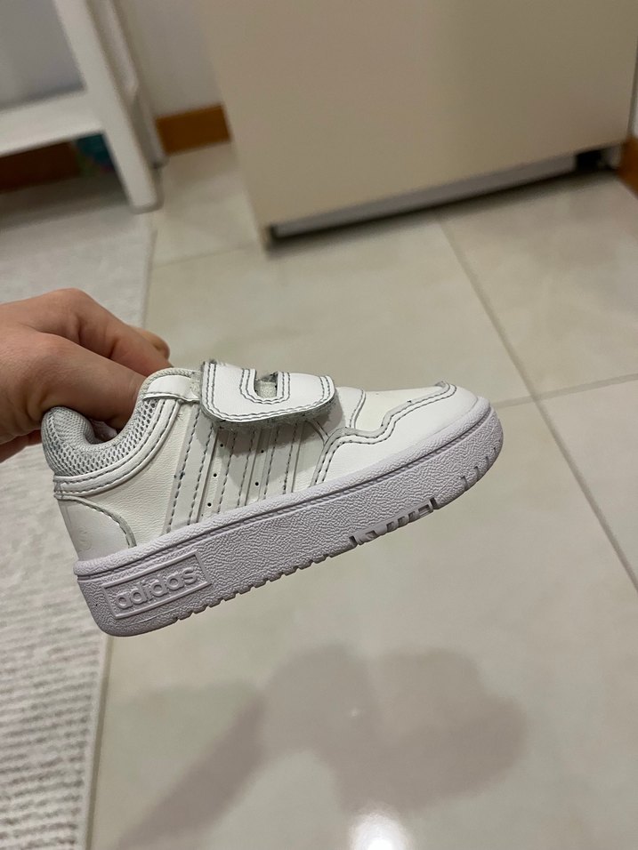 Beyaz, Velcro bantlı erkek çocuk spor ayakkabısı. Kauçuk tabanlı, sade ve hafif sokak stili tasarım.
