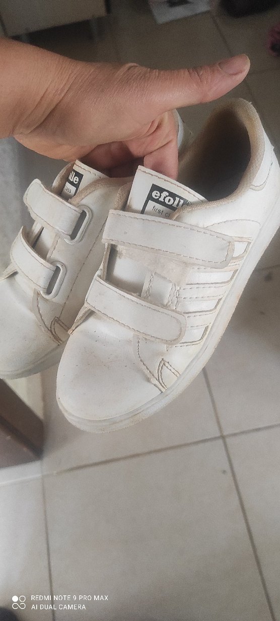 Beyaz, gri detaylı, velcro bantlı kauçuk erkek çocuk spor ayakkabısı. Efoll markasına ait, sokak tarzı rahat model.