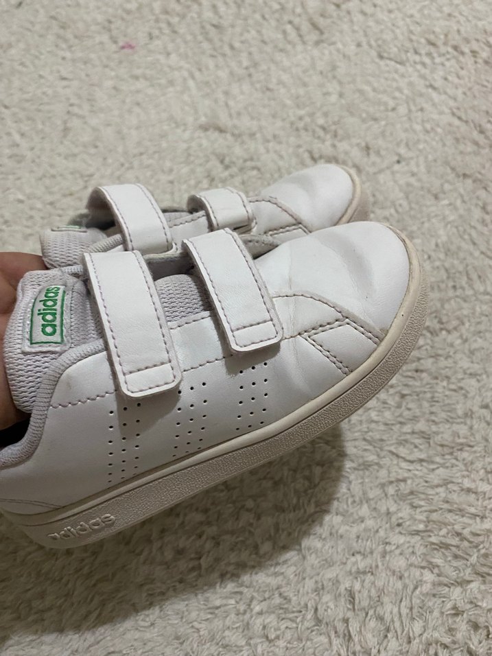 Sorunsuz orjinal Beyaz erkek çocuk spor ayakkabısı, velcro bantlı ve kauçuk tabanlı, pastel tonlarda sade tasarım. Rahat ve kolay giyilir.