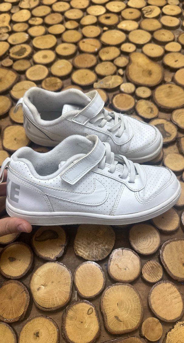 Orjinal Nike temiz kullanıldı Beyaz erkek çocuk spor ayakkabı, velcro ve bağcıklı, hafif yılan deseni ve kauçuk tabanlı rahat tasarım.