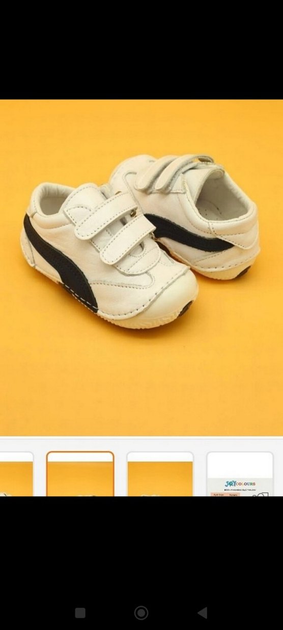 Beyaz ve siyah detaylı, lastik tabanlı, Velcro bantlı erkek çocuk spor ayakkabısı.