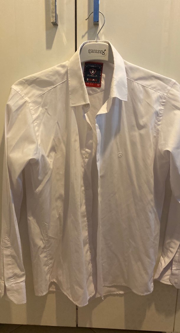 Pamuk kumaştan yapılmış, düğmeli, uzun kollu beyaz erkek gömleği. Notlu yaka ve parlak dokusuyla ofis için uygundur. Gamzeg markalıdır.