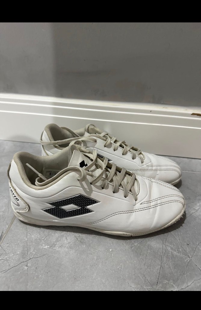 Velcro detaylı beyaz erkek futbol ayakkabısı, kauçuk tabanlı ve sade tasarımlı, sportif ve gündelik sokak stiline uygun. ⚽ Oğlum kısa süre kullandı artık olmadığı için kullanamıyor sorunsuz temiz yeni gibi