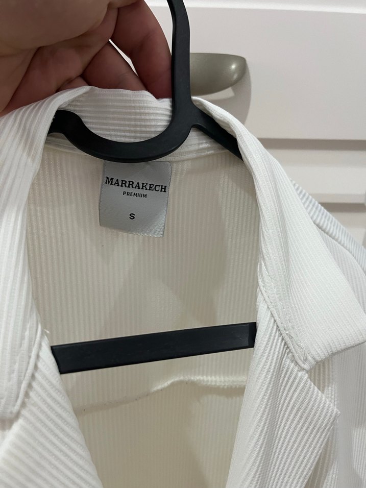 Beyaz erkek gömlek, düğmeli ve kısa kolludur. Notch yakalı, regular fit ve baskılıdır. Sentetik kumaştan yapılmıştır. MARRAKECH etiketlidir.