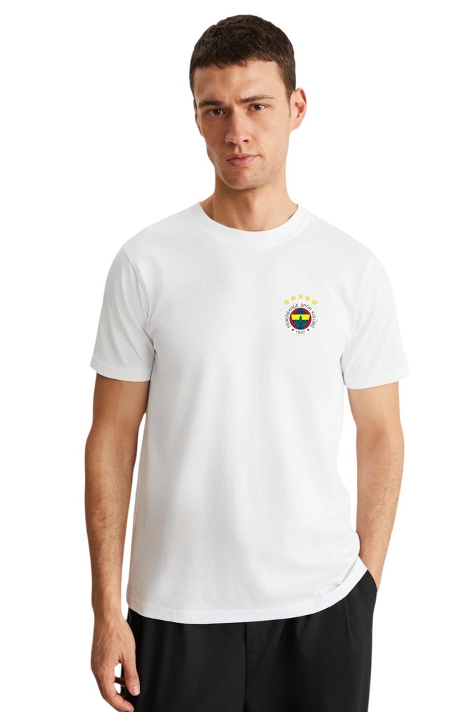 Pamuklu kumaştan üretilmiş, kısa kollu ve bisiklet yaka erkek tişörtü. Beyaz renkte, üzerindeki küçük amblemle rahat ve şık bir görünüm sunar.
