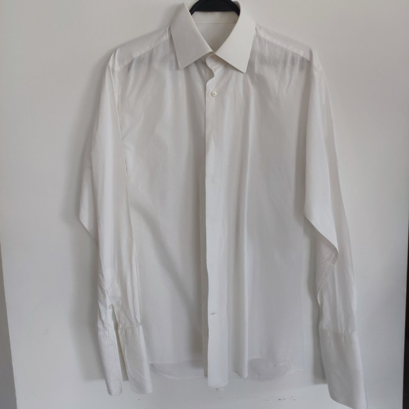 Kol Düğmeli, yakalı ve uzun kollu beyaz erkek gömleği. Rahat kesimli, Kol düğmeleri ile kullanılan Ofis ve sokak stiline uygundur.