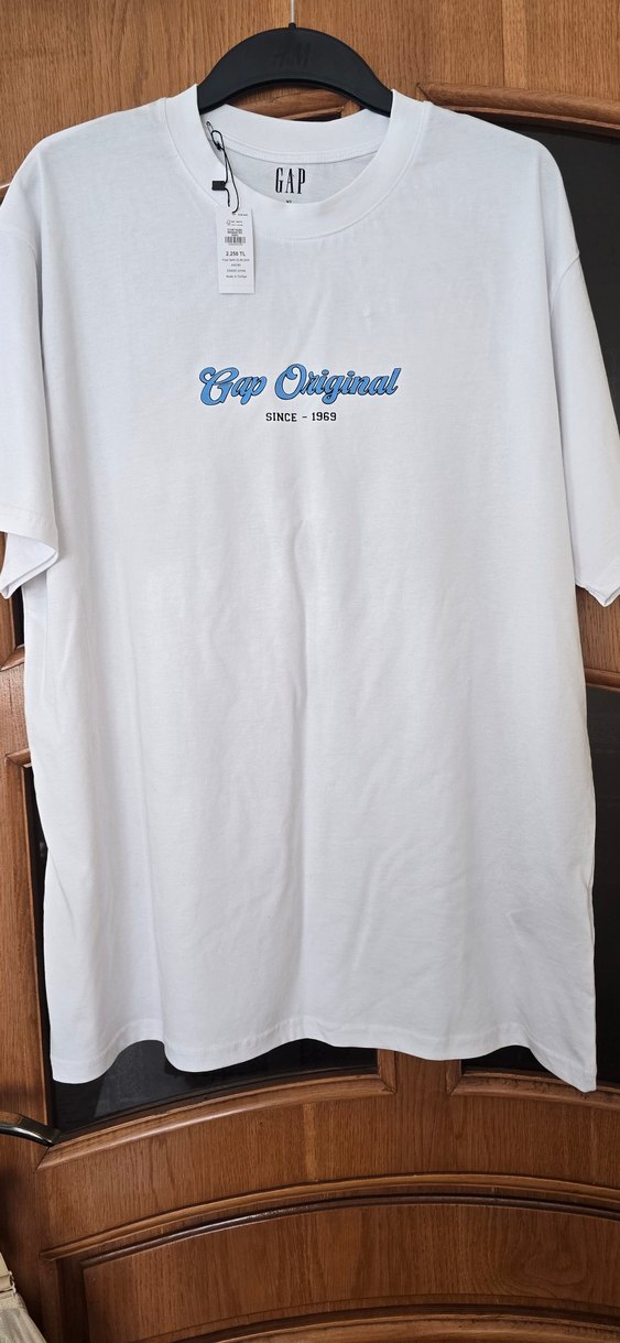 Beyaz pamuklu erkek tişört, bol kesim, bisiklet yaka ve kısa kolludur. "Cap Original SINCE - 1969" baskısı ile çok güzel.ikş kol arası 62 cm boyu 80 cm