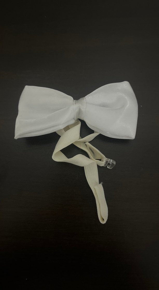 Ayarlanabilir bant ve klipsli, sade beyaz erkek papyon. Klasik ve basit tasarıma sahiptir.