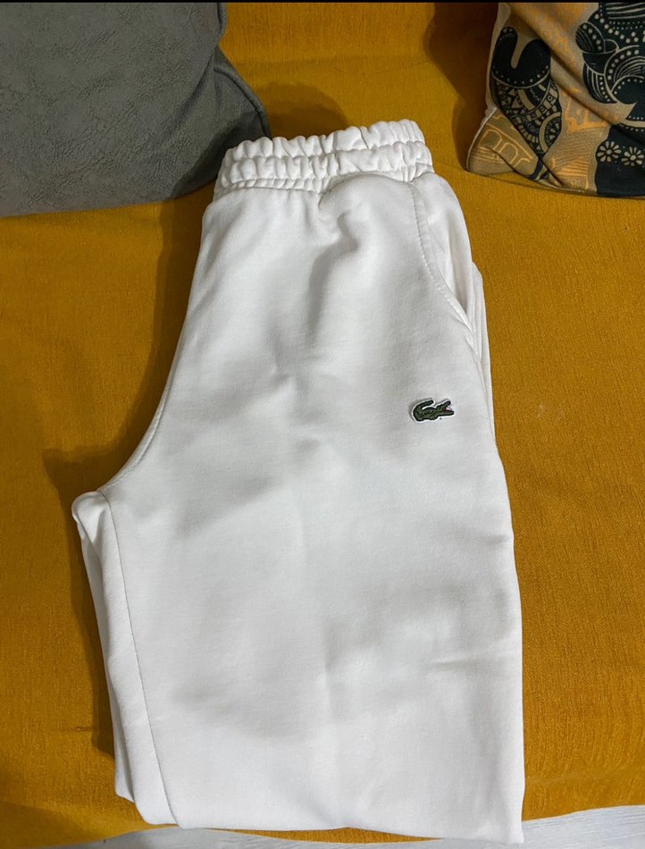 Rahat kesim, elastik bel ve yan cepli beyaz erkek eşofman altı. Yumuşak ve sıcak kumaştan üretilmiş, küçük yeşil logo detayı bulunur. Günlük kullanım için uygundur.