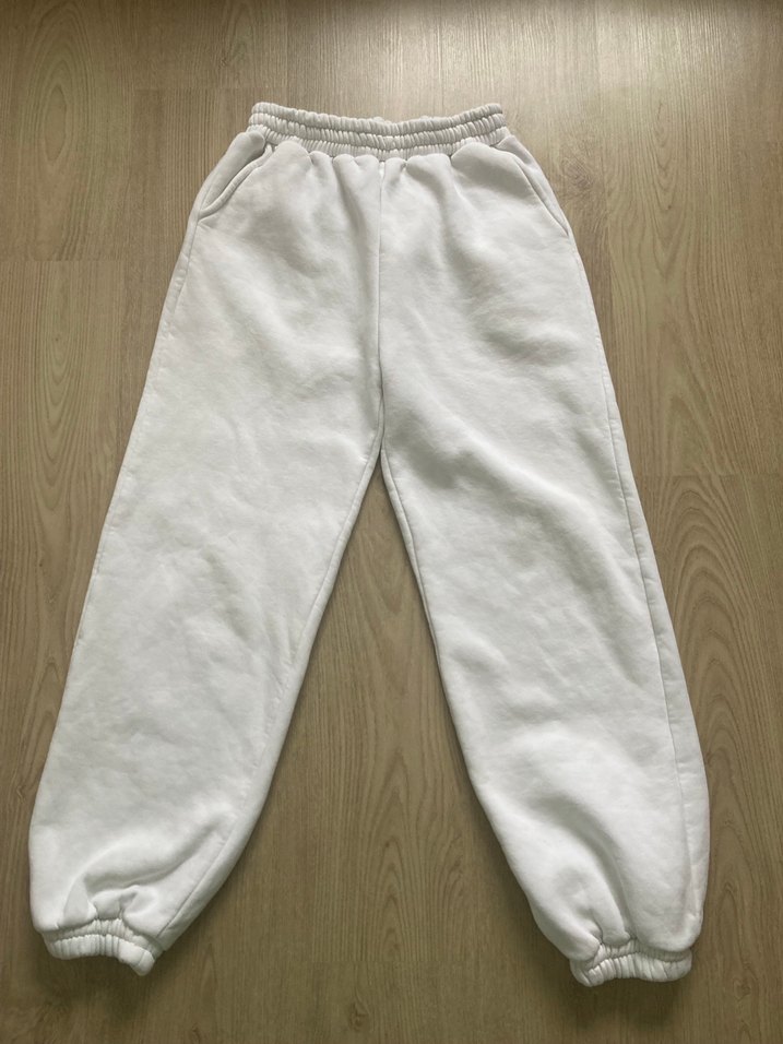 Yumuşak ve sıcak kumaştan, elastik bel ve paça manşetli beyaz rahat kesim kadın eşofman altı. Günlük rahatlık ve sokak stiline uygun. ♀️Marka temsilidir.