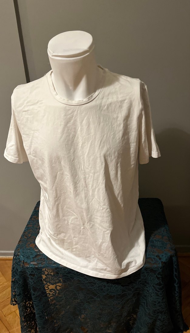 Beyaz, desen içermeyen, normal boyda ve salaş kesim erkek tişörtü. Minimalist ve rahat bir tasarım.