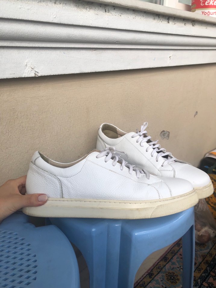Beyaz erkek spor ayakkabı. Markasını hatırlamıyorum. İç tabanlığı yoktur 45 no