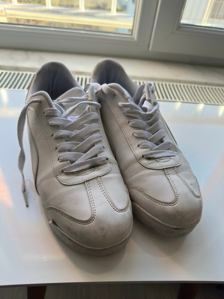 Beyaz renkli, lastik malzemeden yapılmış ayakkabı. Günlük kullanım için uygun, desen içermeyen rahat ve şık bir model.