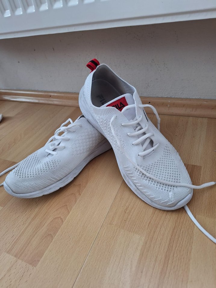 Beyaz bağcıklı spor ayakkabısı, hafif örme üst yüzey ve kauçuk taban ile spor sokak tarzına uygun. Defosunu fotoğraf olarak görsellere ekledim. Alana hayırlı olsun