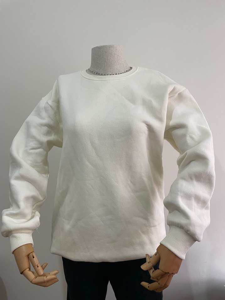 Beyaz renk, yuvarlak yaka ve uzun kollu . Standart beden