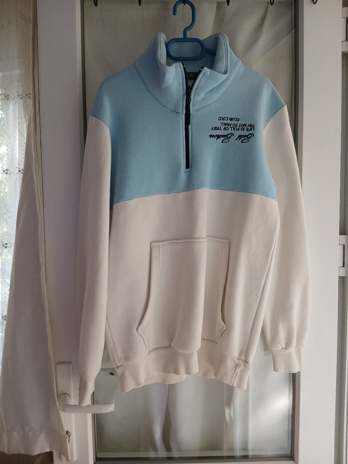 Beyaz renkte, bisiklet yakalı ve uzun kollu kadın sweatshirtü. Rahat kesimi ve yumuşak, sıcak kumaşıyla gündelik kullanıma uygundur.