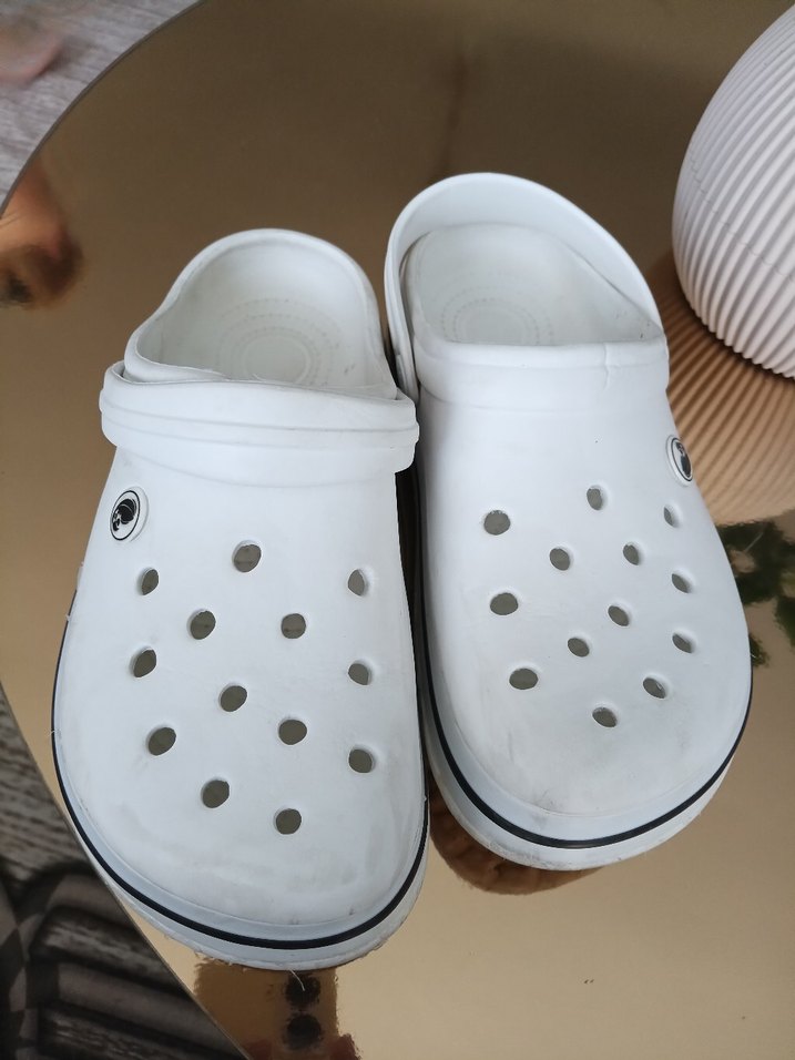 Beyaz renkte, kauçuk malzemeden yapılmış, desen içermeyen sade erkek terlik. Günlük kullanım için uygun, minimalist ve karşı kültür tarzındadır. Kadın crocs terlik.