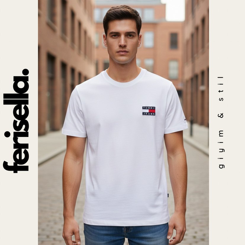 Beyaz erkek tişört, kısa kollu ve yuvarlak yakalıdır. Yumuşak pamuktan üretilmiş, göğsünde baskılı logo bulunur. Günlük kullanım için rahat ve şık bir seçimdir. S M L XL XXL