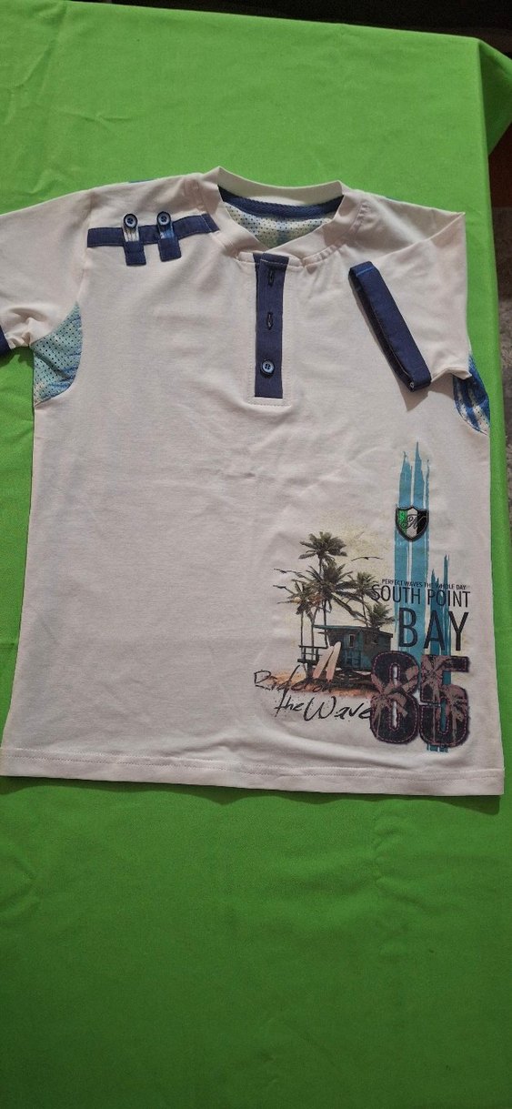 Kısa kollu, bisiklet yakalı beyaz erkek tişörtü. Baskılı desenler ve bol kesim. Bel detaylı, sokak stili için uygun.
