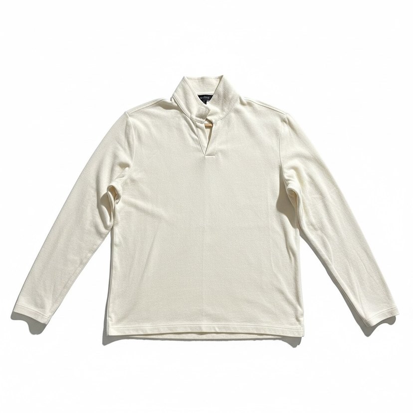 Beyaz Erkek Uzun Kollu Polo Yaka Havlu Sweatshirt