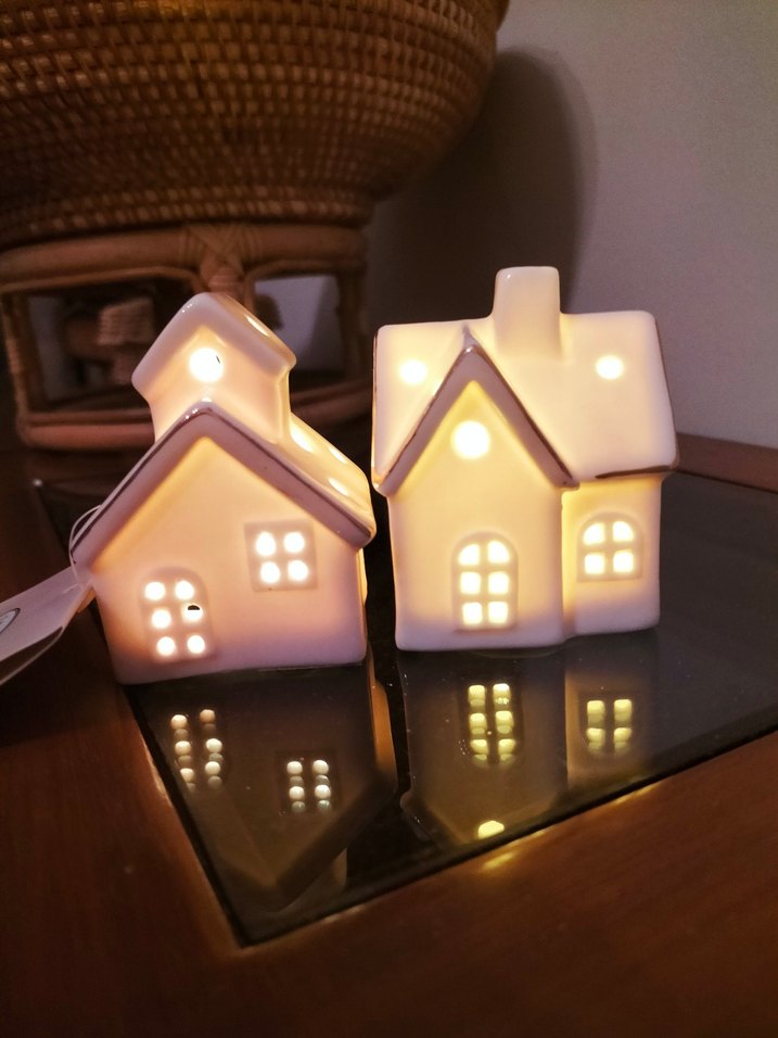 Küçük pencereleri ışık geçiren beyaz ev şeklinde dekoratif mumluklar, sıcak bir atmosfer sağlar. ️ebatlari kucuktur